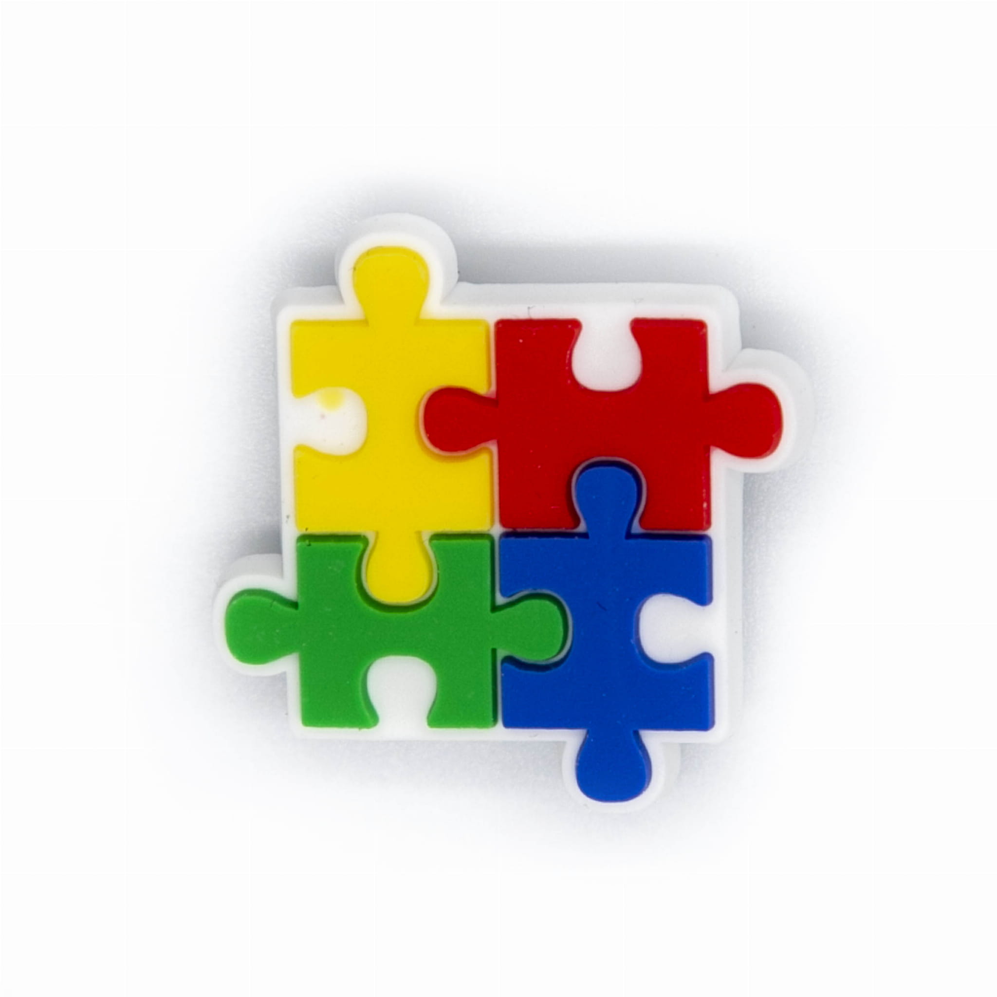 Kolorowa gumowa ozdoba - puzzel, symbol wsparcia dla osób z Autyzmem.