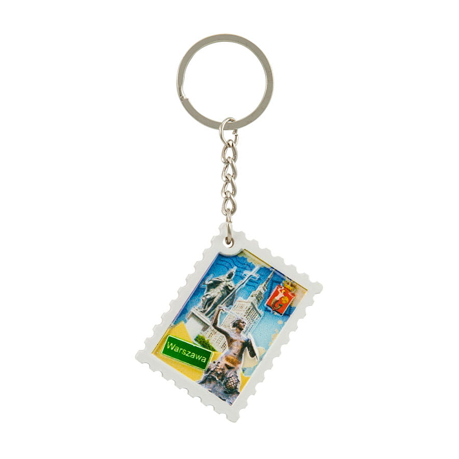 Kolorowy breloczek w kształcie znaczka pocztowego. Forma tego breloka była wpierw projektowana w stylu 3d i finalnie precyzyjnie wyfrezowana. Efekt jest taki że elementy, charakterystyczne dla miasta znajdujące się na breloku są wypukłe.