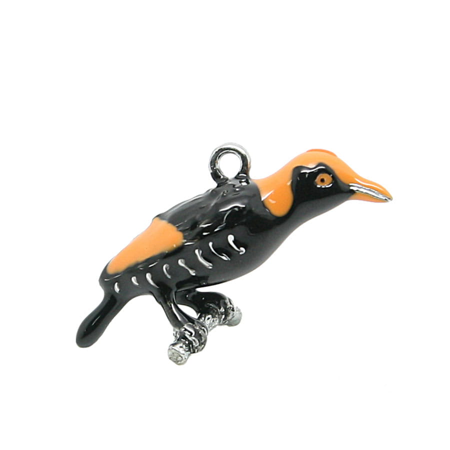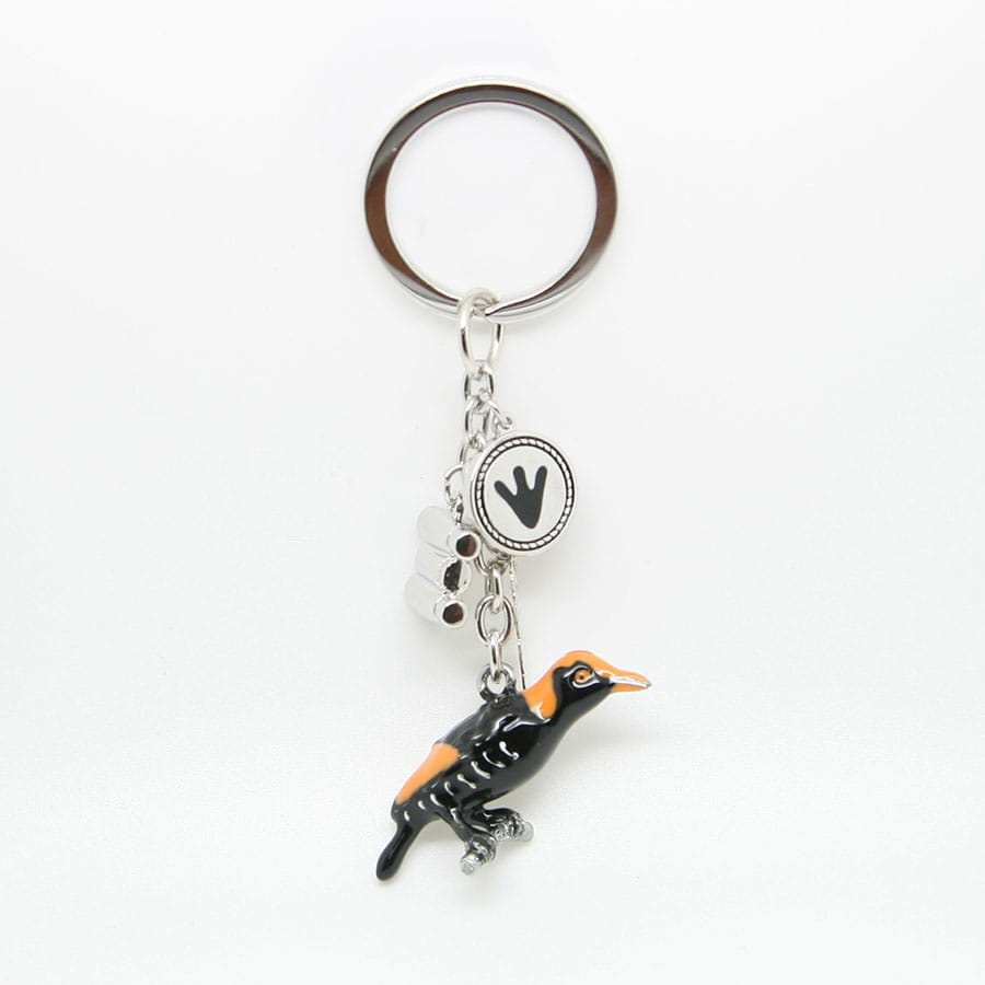 Metalowy, bardzo starannie wykonany brelok przedstawiający żółtego ptaka - wilgę. Zrobiony w stylu popularnych zawieszek 'charms'. Przywieszkami są tabliczka z napisem "Polska", ozdobne kółko oraz muszelka. Zarówno brelok jak i doczepione do niego zawieszki wykonane są z wyjątkową dbałością o szczegóły. Mocowanie to wysokiej jakości oczko gwarantujące trwałe przyczepienie breloczka.