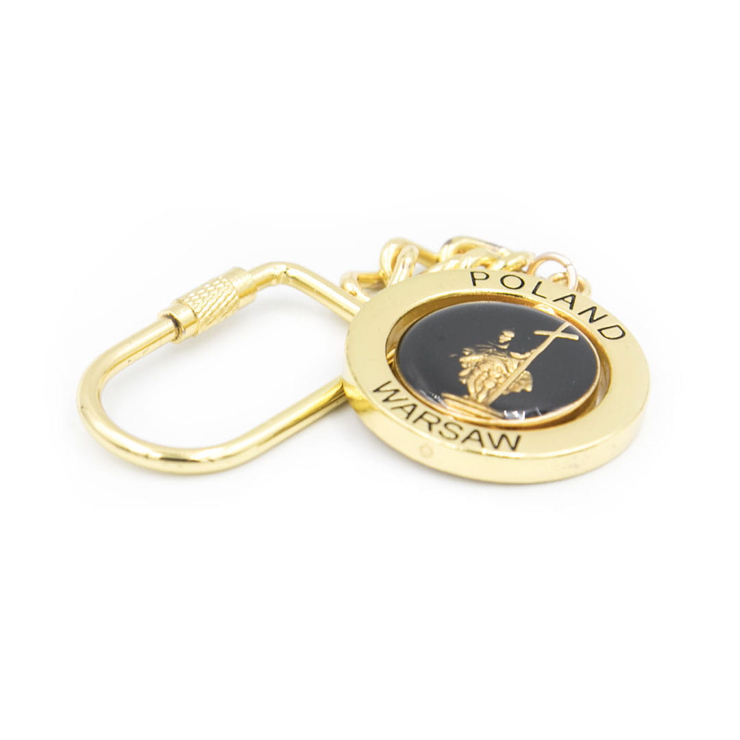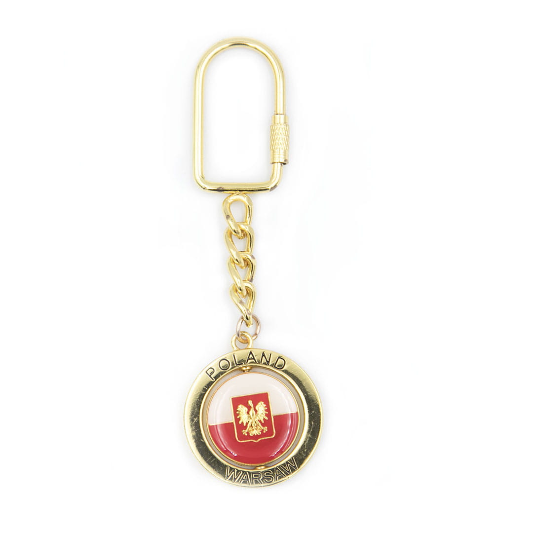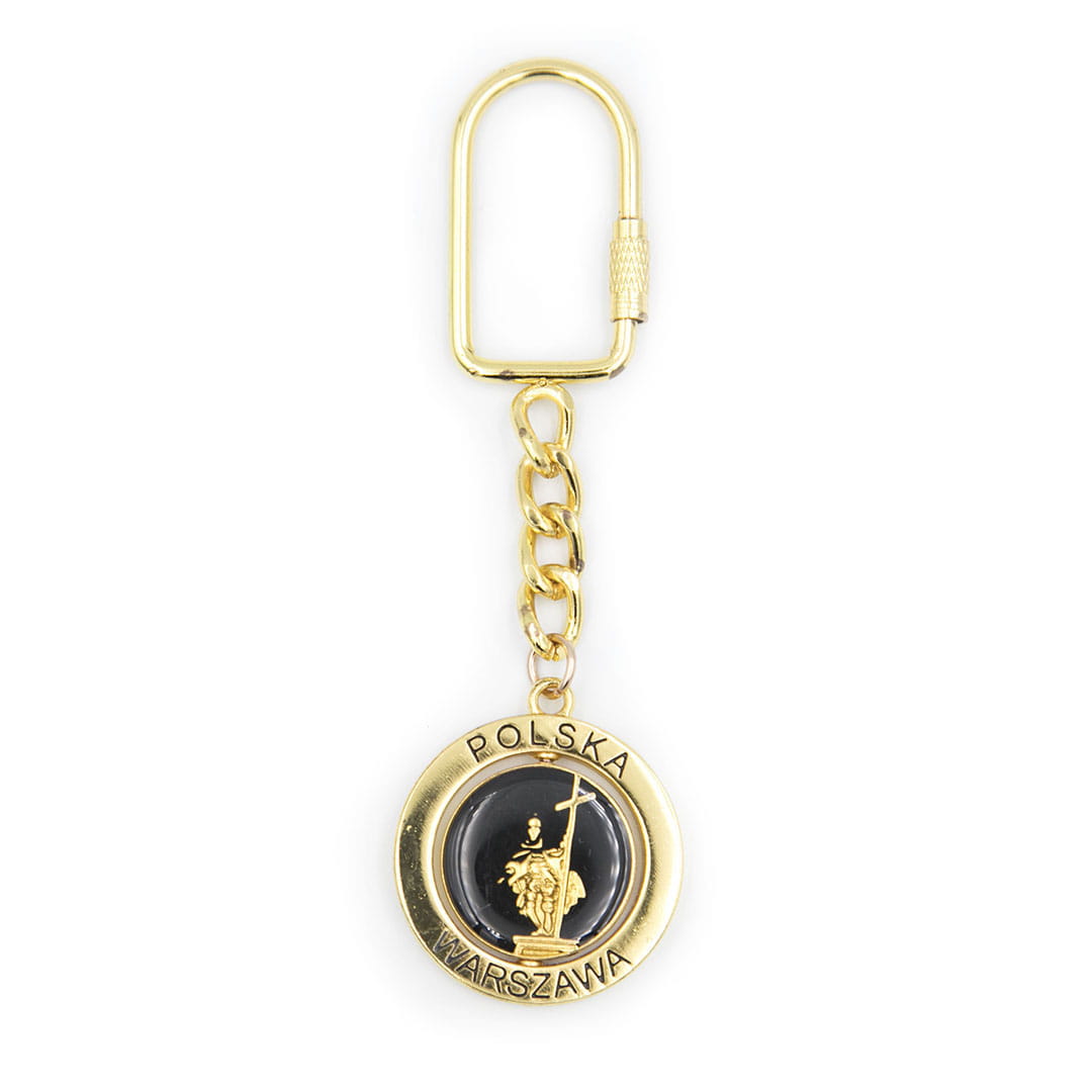 Metalowy, okrągły brelok z obrotowym środkiem. Na awersie obręczy na górze znajduje się napis "Polska", a na dole "Warszawa". Na rewersie na górze "Warsaw", na dole "Poland". Kółko w środku z jednej strony posiada Kolumnę Zygmunta na czarnym tle, a z drugiej flagę Polski z godłem. Mocowanie breloka to wysokiej jakości zakręcane oczko gwarantujące trwałe przyczepienie breloczka.