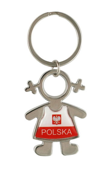 Metalowy, niklowany brelok o kształcie damskiej postaci z charakterystycznymi uszami na wzór gamet żeńskich. Postać posiada biało-czerwoną nadrukowaną sukienkę z godłem i napisem "Polska". Nadruk charakteryzuje się wysoką szczegółowością, a jego trwałość zapewnia pokrycie wykonane z bezbarwnej żywicy. Mocowanie breloka to wysokiej jakości oczko gwarantujące trwałe przyczepienie breloczka.