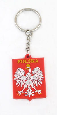 Gumowy kolorowy elastyczny brelok, w postaci polskiego godła.