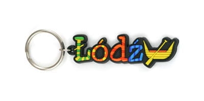 Gumowy, wielokolorowy, elastyczny brelok w kształcie napisu "Łódź" z symboliczną łodzią i wiosłem. Mocowanie stanowi wysokiej jakości oczko gwarantujące trwałe przyczepienie breloczka.