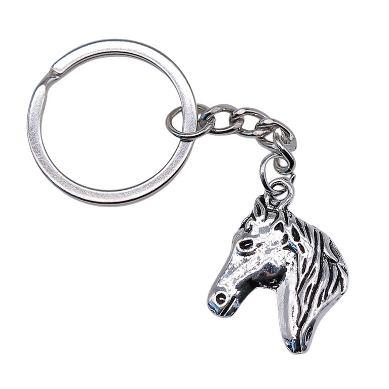 Metalowy, niklowany brelok o kształcie głowy konia bez ogłowia. Stanowi ciekawy dodatek dla wszystkich fanów jeździectwa. Brelok jest jednostronny.