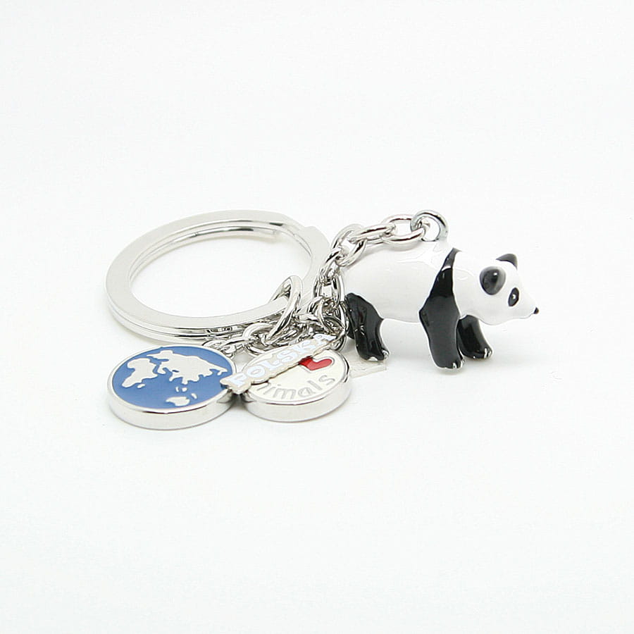 Metalowy, bardzo starannie wykonany brelok przedstawiający pandę. Zrobiony w stylu popularnych zawieszek 'charms'. Przywieszkami są tabliczka z napisem "I ❤ Animals", tabliczka z napisem "Polska", pacyfkę oraz kula ziemska. Zarówno brelok jak i doczepione do niego zawieszki wykonane są z wyjątkową dbałością o szczegóły. Mocowanie to wysokiej jakości oczko gwarantujące trwałe przyczepienie breloczka.