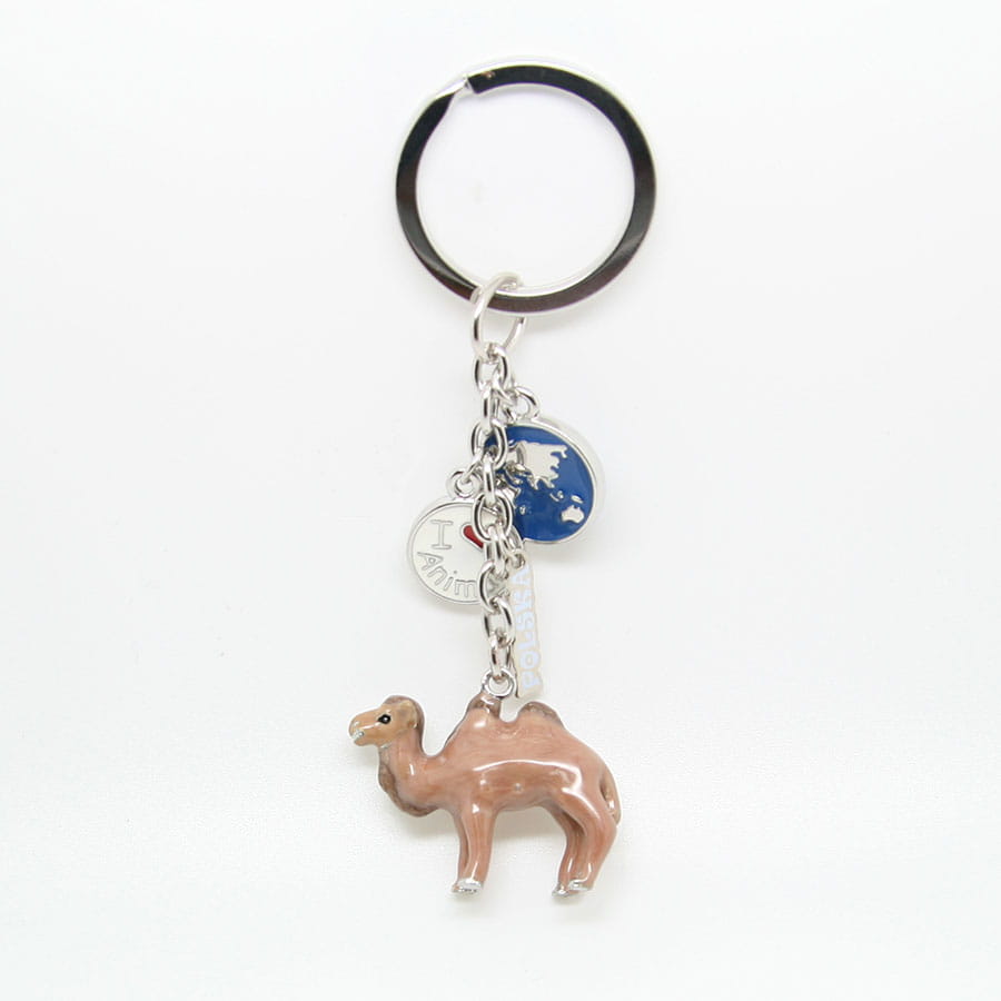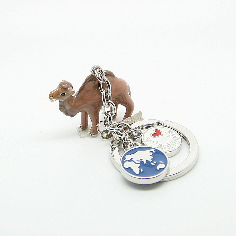 Metalowy, bardzo starannie wykonany brelok przedstawiający wielbłąda. Zrobiony w stylu popularnych zawieszek 'charms'. Przywieszkami są tabliczka z napisem "I ❤ Animals", tabliczka z napisem "Polska" oraz kula ziemska. Zarówno brelok jak i doczepione do niego zawieszki wykonane są z wyjątkową dbałością o szczegóły. Mocowanie to wysokiej jakości oczko gwarantujące trwałe przyczepienie breloczka.