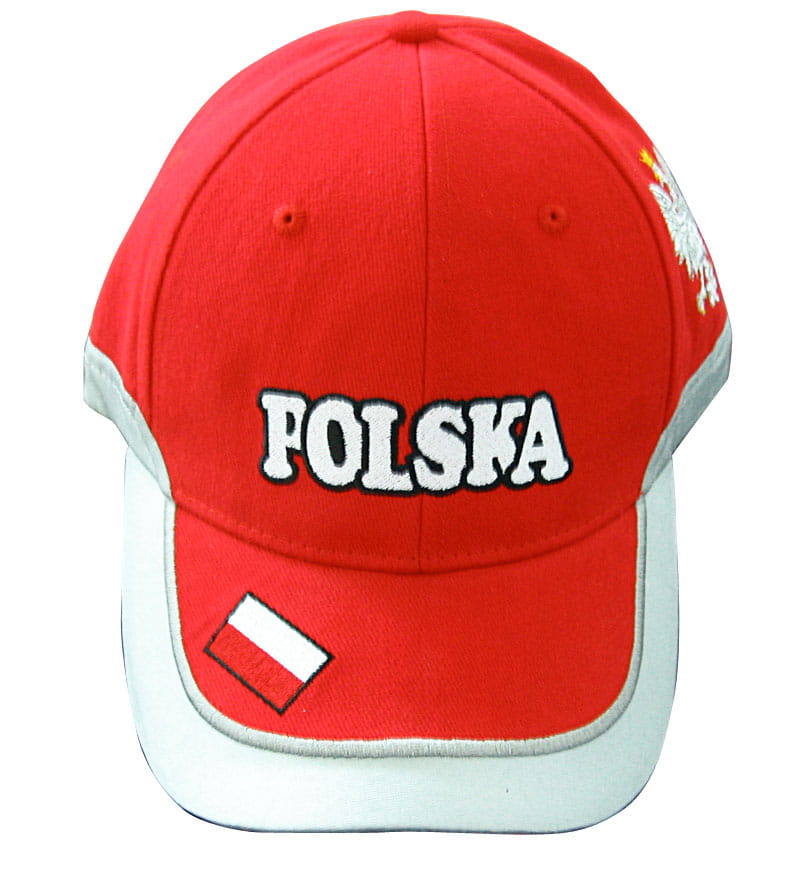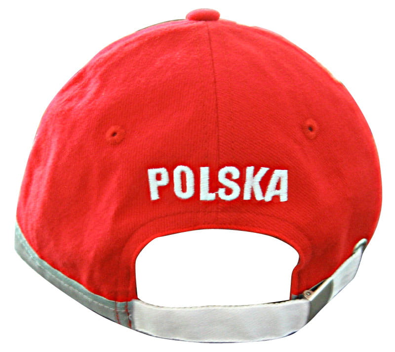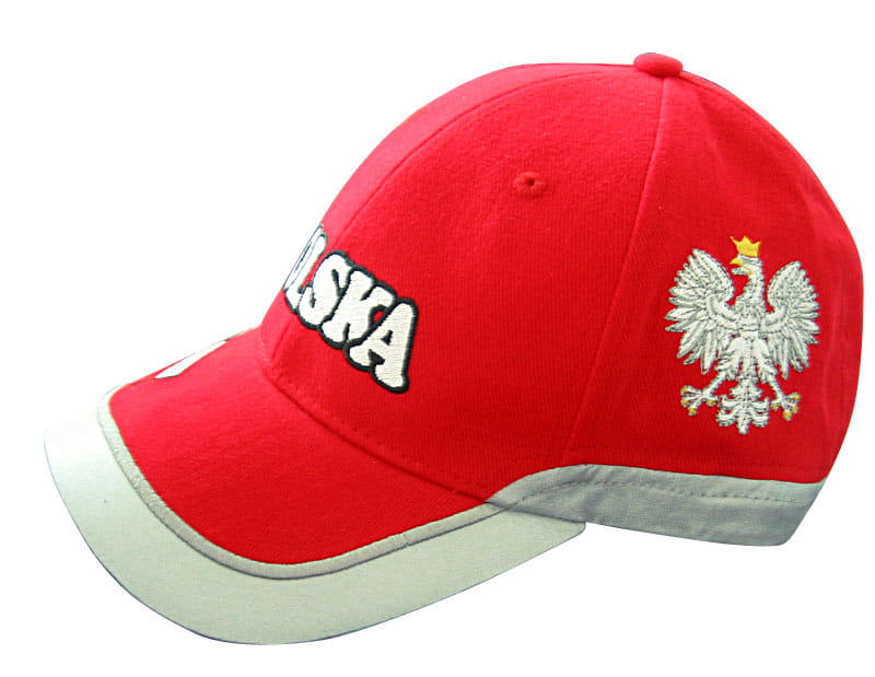 Bawełniana czapka z daszkiem z wyszywanymi polskimi elementami (orzeł, flaga, napis). Czapka ma rozmiar uniwersalny z regulacją wielkości.