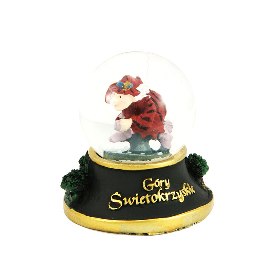 Ręcznie malowana kula śniegowa z zawartym we wnętrzu symbolicznym wizerunkiem Czarownicy. Jej podstawa wykonana jest ze zdobionego polyresinu z napisem "Góry Świętokrzyskie". Sama kula w której znajduje się figurka wykonana została ze szkła.