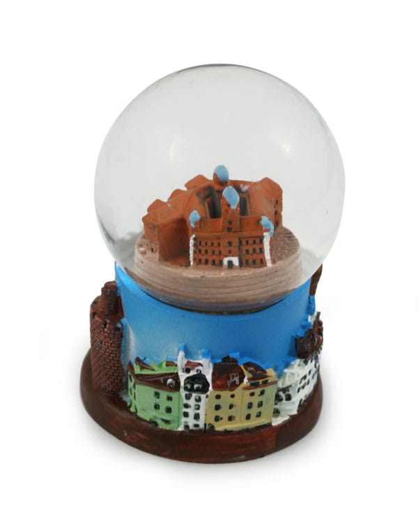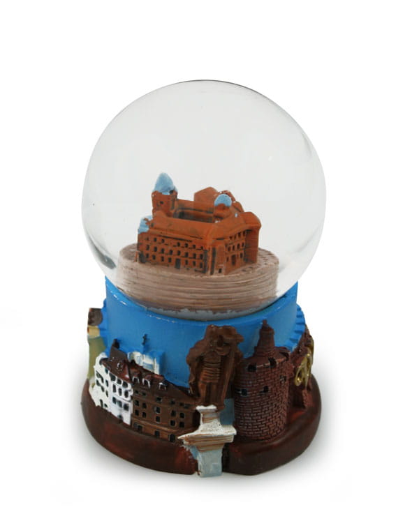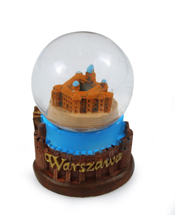 Ręcznie malowana kula śniegowa z zawartym we wnętrzu wizerunkiem warszawskiego Zamku Królewskiego. Jej zdobiona podstawa wykonana jest z polyresinu. Widnieje na niej napis "Warszawa". Sama kula w której znajduje się figurka wykonana została ze szkła.