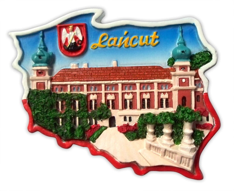 Ręcznie malowany magnes w kształci granic Polski, wykonany z tworzywa będącego mieszaniną żywiczną. Posiada wypukłą strukturę i cechuje się dużą ilością detali.