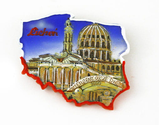 Ręcznie malowany magnes w kształci granic Polski, wykonany z tworzywa będącego mieszaniną żywiczną. Posiada wypukłą strukturę i cechuje się dużą ilością detali.