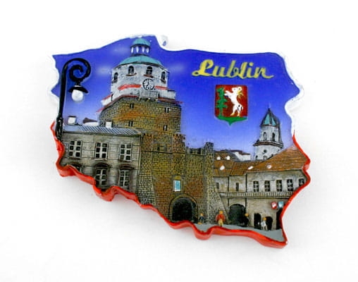 Ręcznie malowany magnes w kształci granic Polski, wykonany z tworzywa będącego mieszaniną żywiczną. Posiada wypukłą strukturę i cechuje się dużą ilością detali.