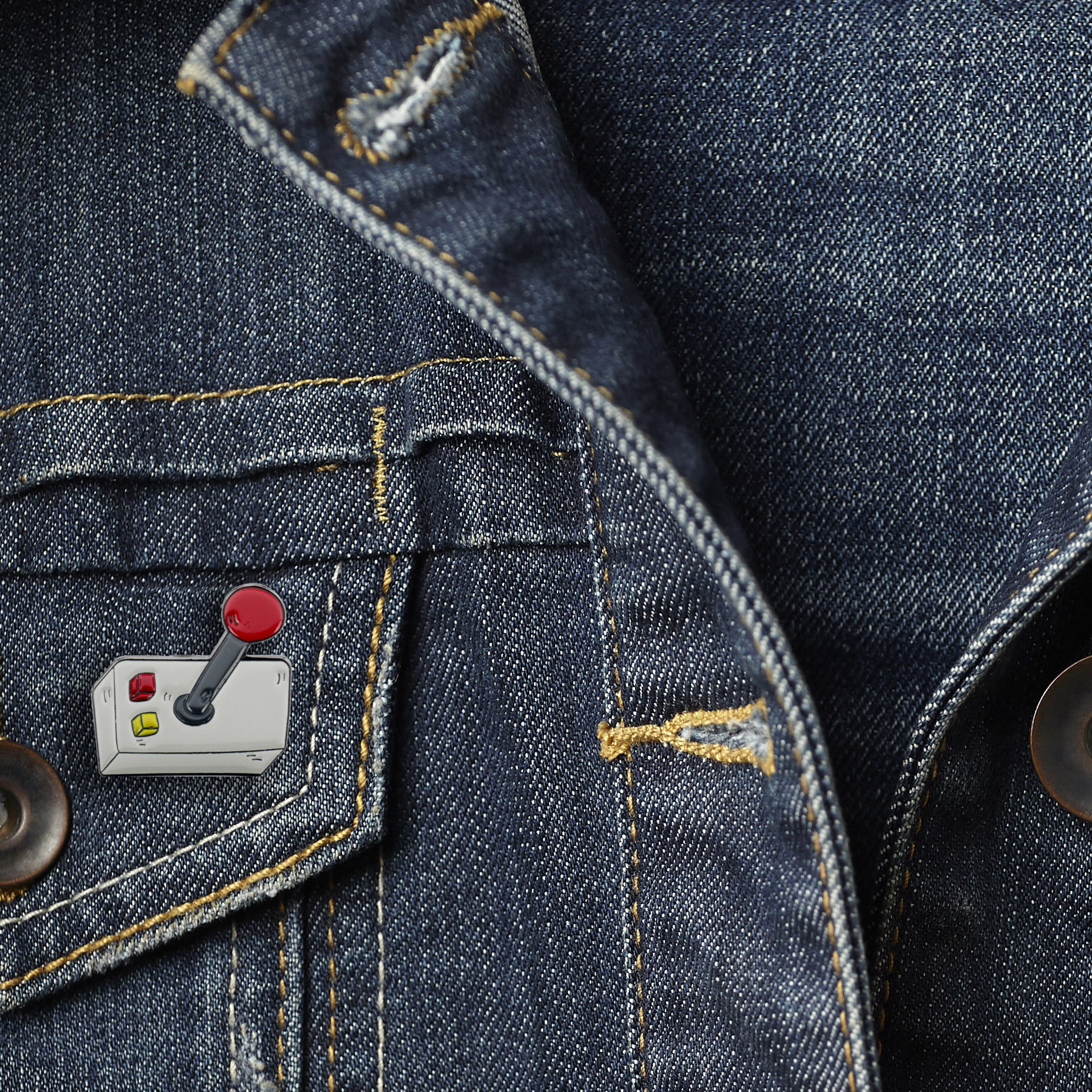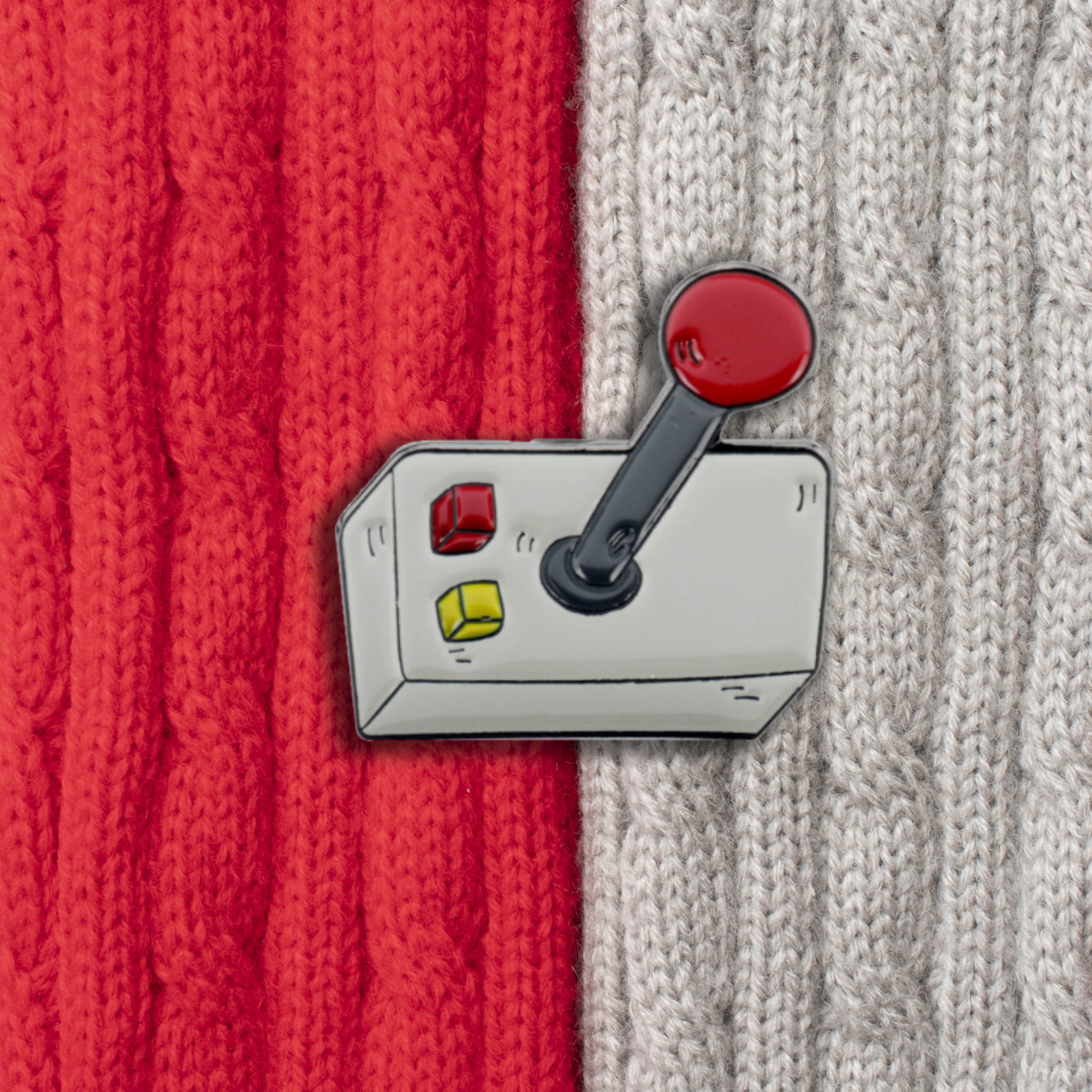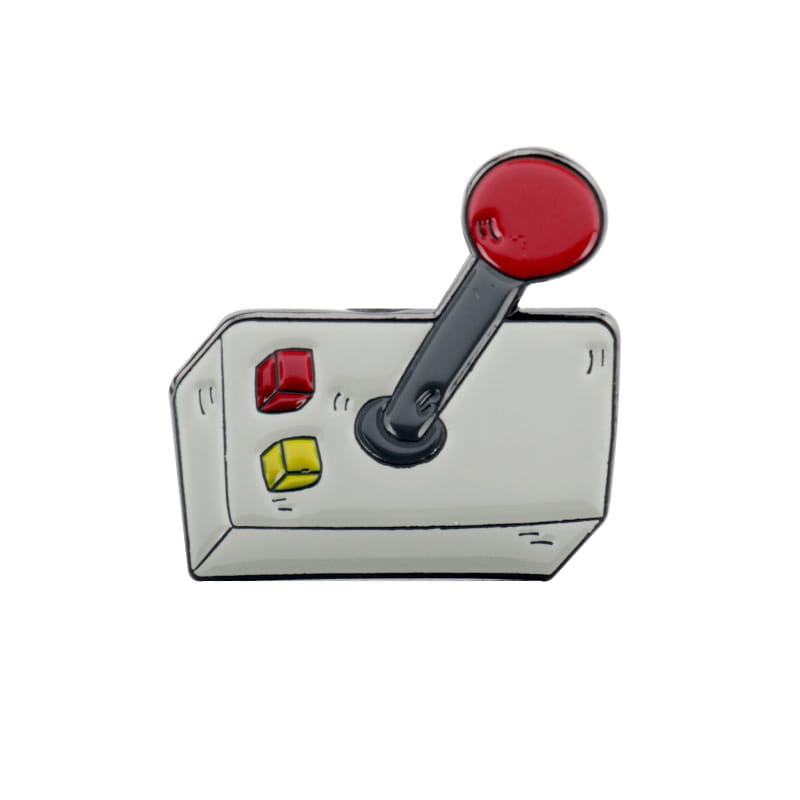 Metalowa przypinka, idealna do dekoracji ubrania, plecaka, czy też torby. Prezentuje ona znany z lat osiemdziesiątych retro joystick. Świetny dla fanów gier wideo, nerdów i geeków. Zakończona gumową nakładką na 'pin', która świetnie mocuje przypinkę do garderoby, dobrze przylegając do materiału.