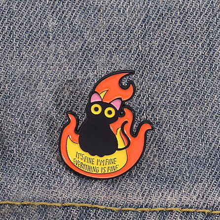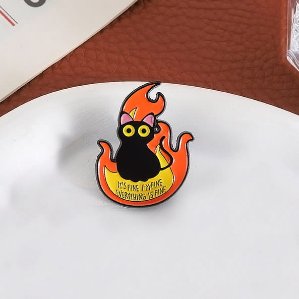 Humorystyczna przypinka przedstawiająca kota otoczonego płomieniami. Doskonały gadżet dla miłośników memów i sarkastycznego humoru.