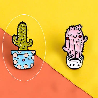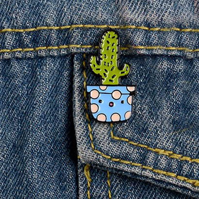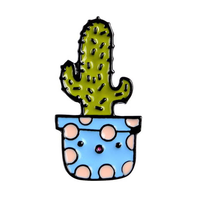 Metalowa przypinka, pins kaktus w doniczce