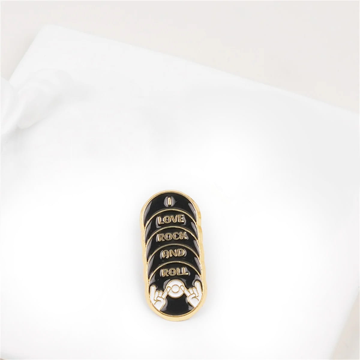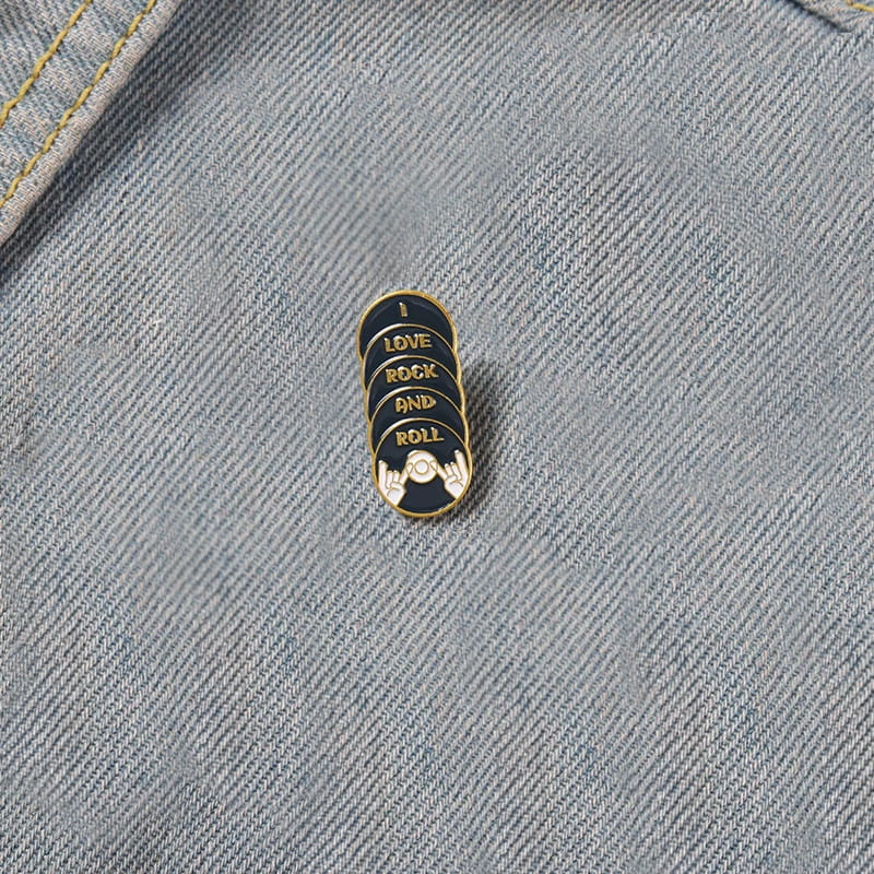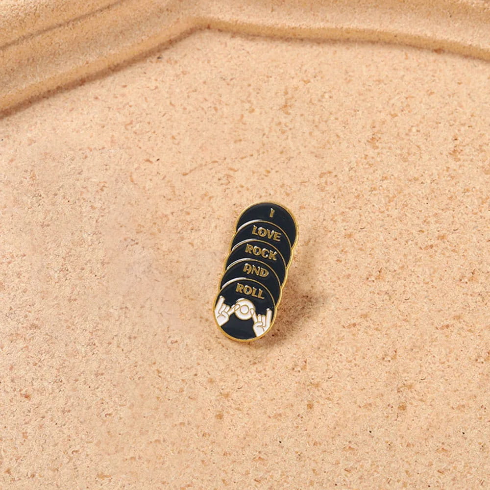 Metalowa przypinka idealna do dekoracji ubrania, fartucha, czy też torby. Prezentuje nakładające się na siebie płyty winylowe ze złotymi literami tworzącymi razem napis "I Love Rock And Roll" oraz dłońmi ułożonymi w charakterystycznym dla rockmenów geście. Idealna dla fanów muzyki, melomanów, osób chcących zaprezentować swoją miłość do muzyki. Przypinka jest bardzo łatwa w zaczepieniu. Zakończona gumową nakładką na 'pin' świetnie trzyma się ubrania, dobrze przylegając do materiału.