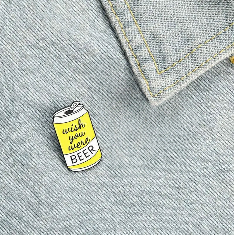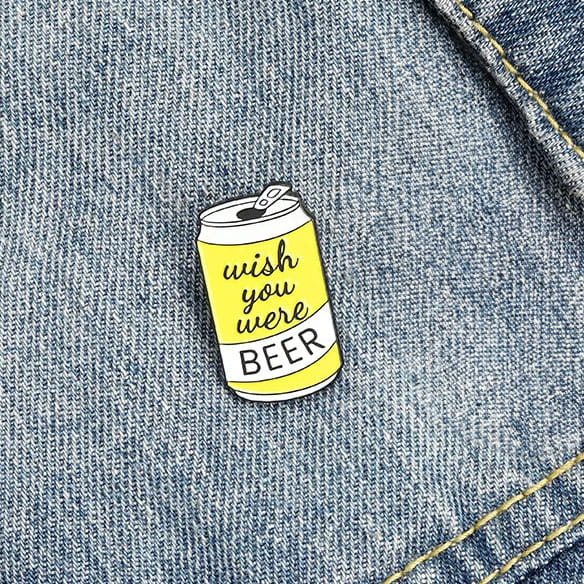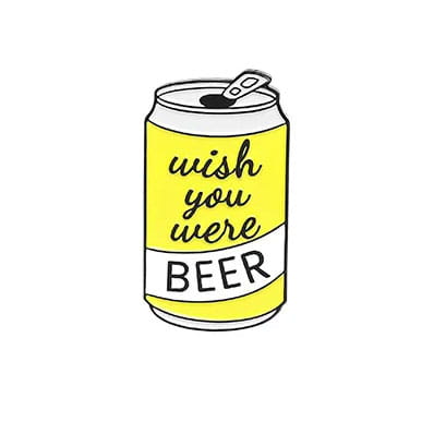 Metalowa przypinka idealna do dekoracji ubrania, fartucha, czy też torby. Prezentuje żółtą, otwartą puszkę z napisem Wish you were Beer. Wprost idealna dla piwoszy. Świetna na prezent lub jako ozdoba uatrakcyjniająca codzienny wizerunek. Przypinka jest bardzo łatwa w zaczepieniu. Zakończona gumową nakładką na 'pin' świetnie trzyma się ubrania, dobrze przylegając do materiału.