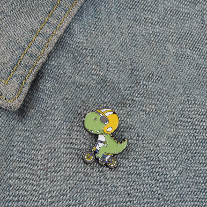 Metalowa przypinka Dinozaur na rowerku