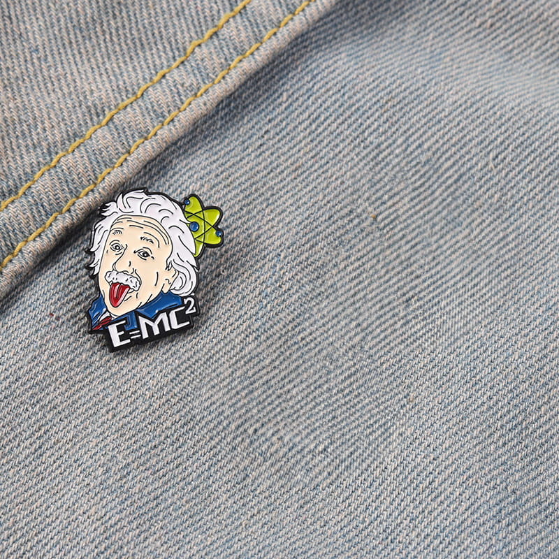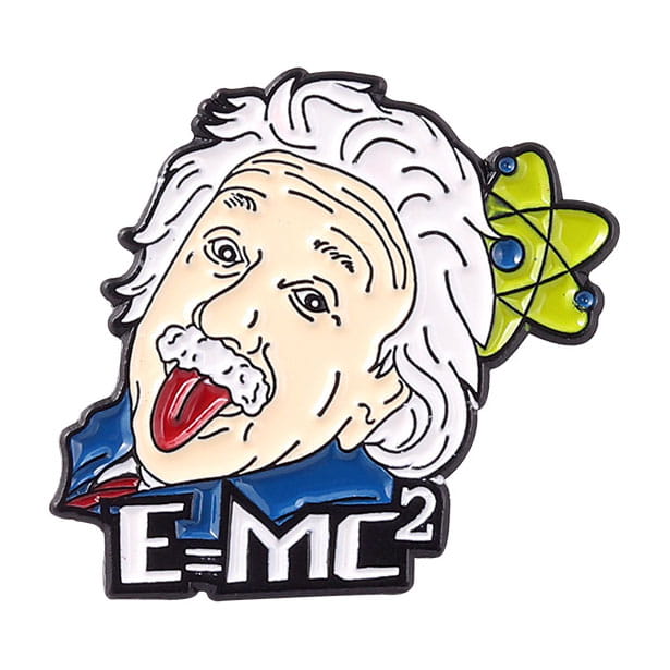 Metalowa przypinka, idealna do dekoracji ubrania, plecaka, czy też torby. Prezentuje wizerunek Einsteina z wystawionym językiem i podpisem E=Mc2. Zakończona gumową nakładką na 'pin', która świetnie mocuje przypinkę do garderoby, dobrze przylegając do materiału.