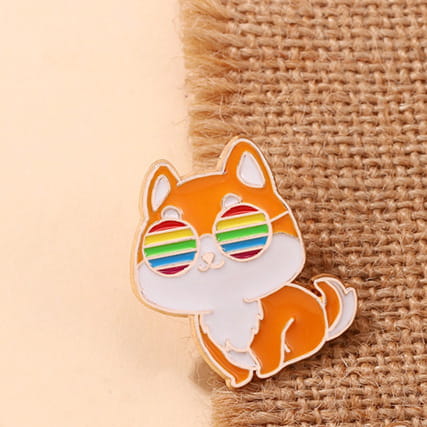 Metalowa przypinka, idealna do dekoracji ubrania, plecaka, czy też torby. Prezentuje lisa w okularach z barwami LGBT. Bardzo dobry gadżet do zaprezentowania swojej orientacji lub poglądów zbieżnych z ruchem LGBT. Zakończona gumową nakładką na 'pin', która świetnie mocuje przypinkę do garderoby, dobrze przylegając do materiału.