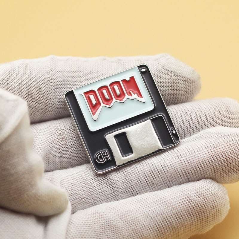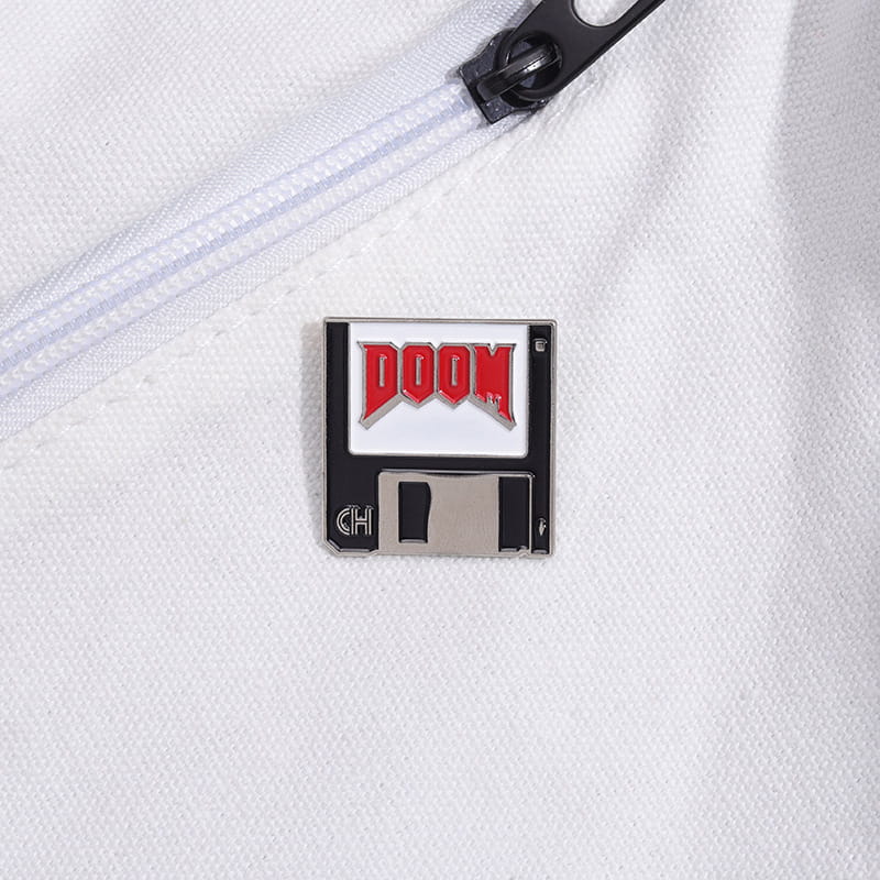 Metalowa przypinka, idealna do dekoracji ubrania, plecaka, czy też torby. Prezentuje ona znaną z lat 90tych dyskietkę z tytułem kultowej gry DOOM. Jest to idealny gadżet dla fanów gier wideo, strzelanek czy też dla osób chcących podkreślić swój wiek i przywiązanie do lat dziewięćdziesiątych. Dla każdego nerda to jest must have, na urodziny, pod choinkę czy na dizeń chłopaka. Zakończona gumową nakładką na 'pin', która świetnie mocuje przypinkę do garderoby, dobrze przylegając do materiału.
