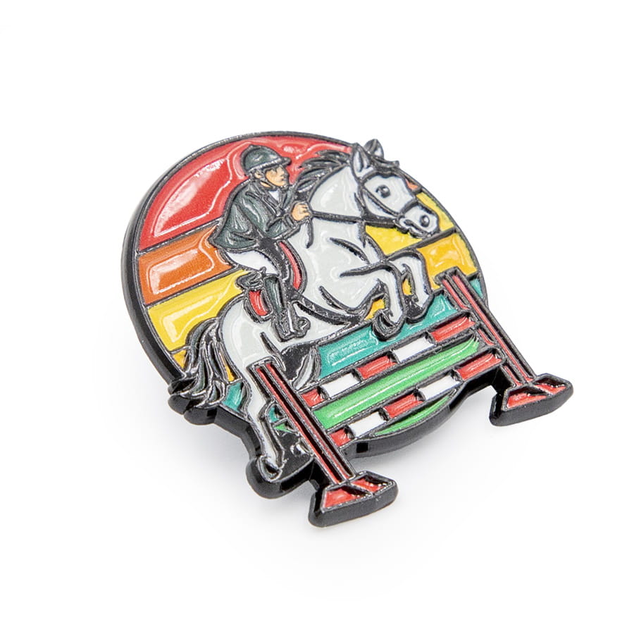 Metalowa przypinka jeździectwo, skoki