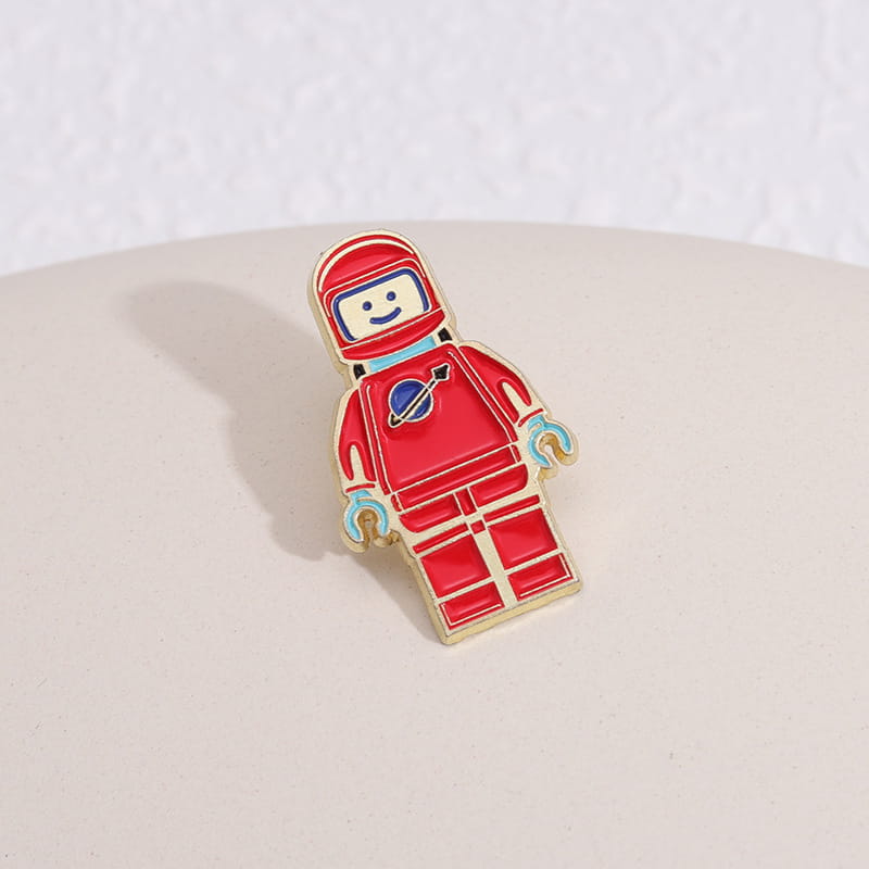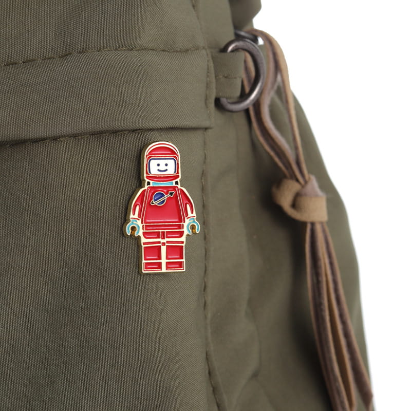 Metalowa przypinka, idealna do dekoracji ubrania, plecaka, czy też torby. Prezentuje ona ludzika Lego w czerwonym stroju astronauty. Jest to doskonały gadżet dla osób chcących zaprezentować swoją sympatię wobec kultowej zabawki, jaką są klocki Lego, a także dla osób pragnących zamanifestować małe dziecko, które wciąż w nich drzemie. Zakończona nakładką na 'pin' typu butterfly, która świetnie mocuje przypinkę do garderoby, dobrze przylegając do materiału.