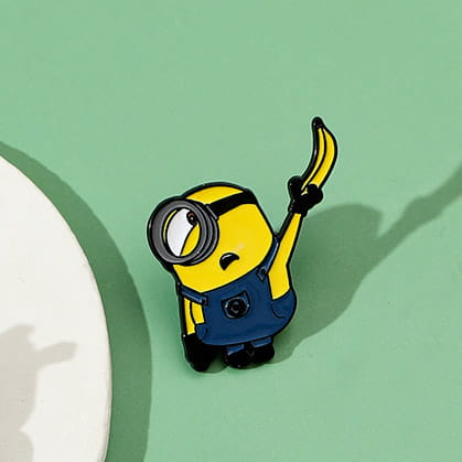 Urocza przypinka z minionkiem trzymającym banana. Idealna dla fanów kultowych postaci i zabawnych dodatków.