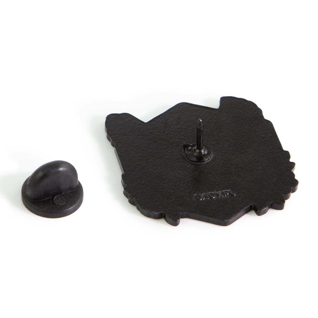 ☑️ Zapięcie: ostry pin z gumową nasadką i małym ostrzem blokującym obracanie