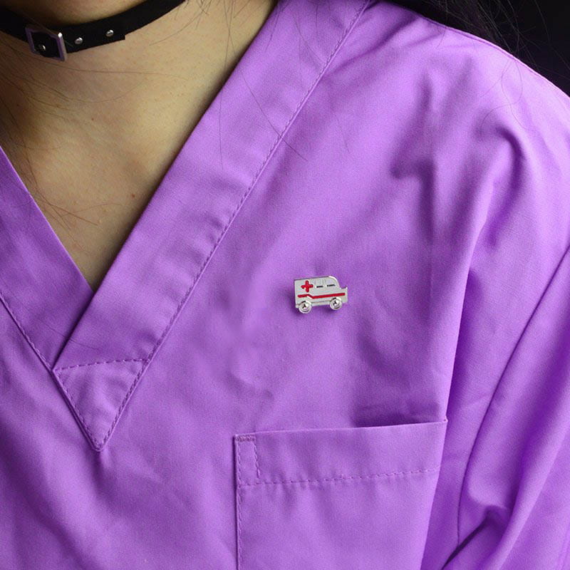 Metalowa przypinka idealna do ubrania, fartucha, czy torby.