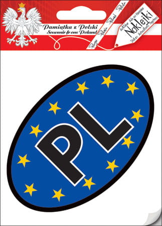 Naklejka na samochód ze znakiem PL, otoczonym gwiazdkami UE.