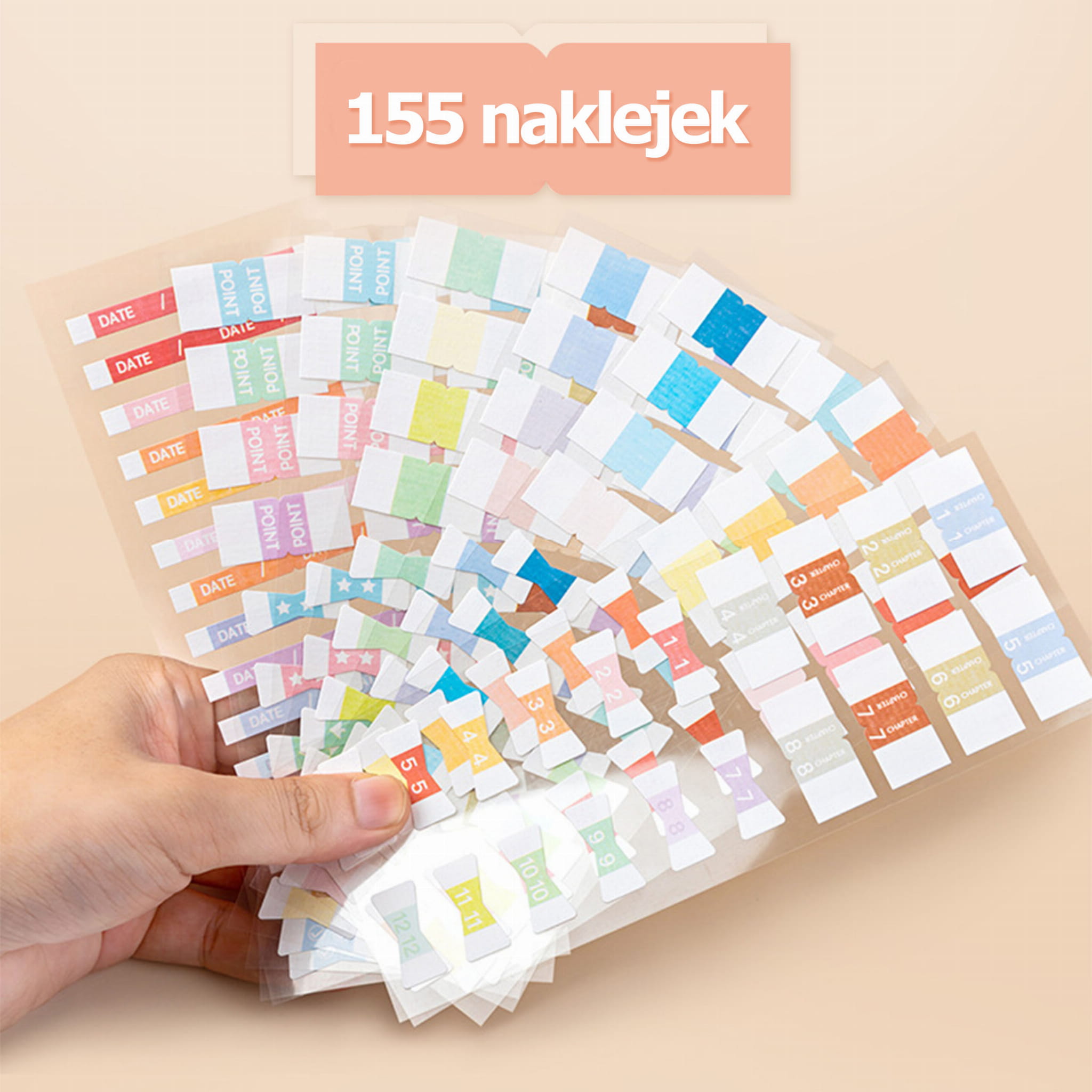 Masz dużo zapisków w swoim notesie, chcesz zaznaczyć ważne fragmenty w tekście książki. Skorzystaj z dedykowanego rozwiązania jakim są prezentowane naklejki, których jest aż 155szt. Są to naklejki wklejane na brzeg strony, indeksujące.