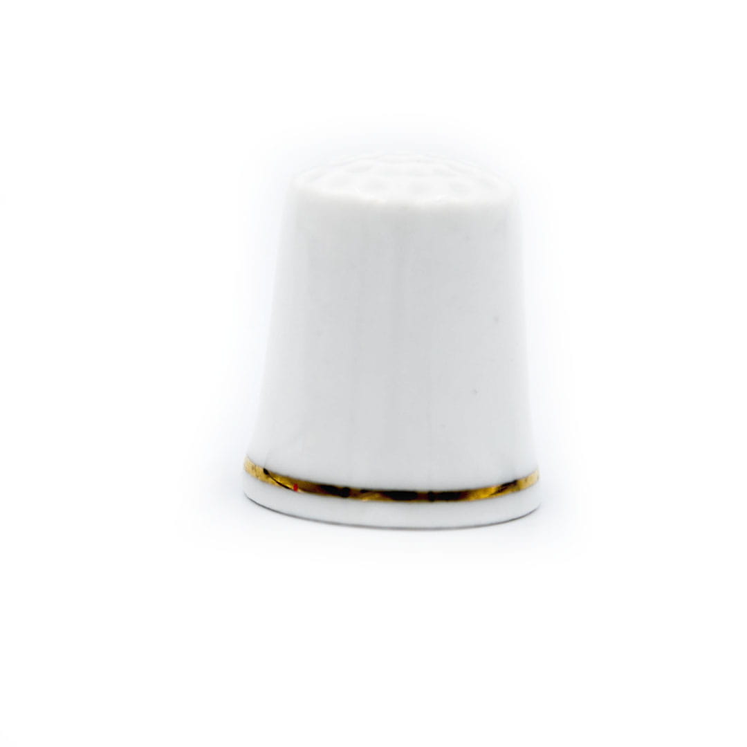 Naparstek ceramiczny z nadrukowanym herbem miasta Łódź.