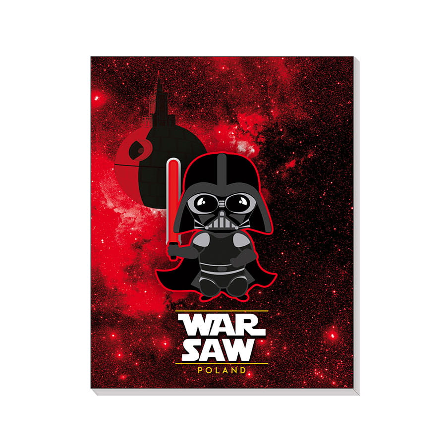 Notes na magnesie z okładką 3D dającą poczucie głębi obrazu. Na okładce znajduje się zabawny rysunek w stylu Gwiezdnych Wojen i napis "WarSaw Poland". Tył notatnika z taśmą magnetyczną - idealny na lodówkę.