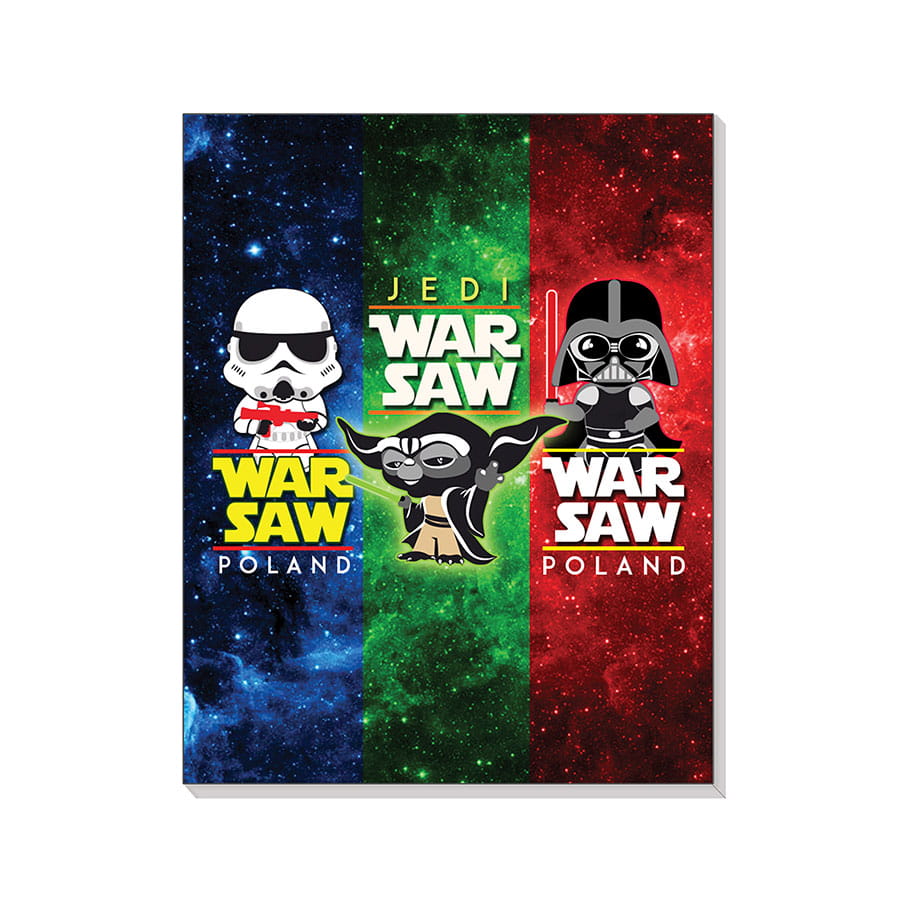 Notes na magnesie z okładką 3D dającą poczucie głębi obrazu. Na okładce znajduje się zabawny rysunek w stylu Gwiezdnych Wojen i napis "WarSaw Poland" i "Jedi WarSaw". Tył notatnika z taśmą magnetyczną - idealny na lodówkę.