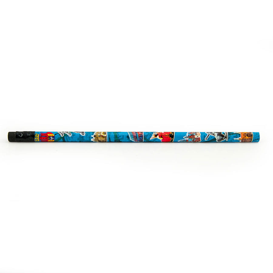 Ołówek HB z gumką, na którym umieszczono najbardziej charakterystyczne miejsca i budowle Krakowskie.