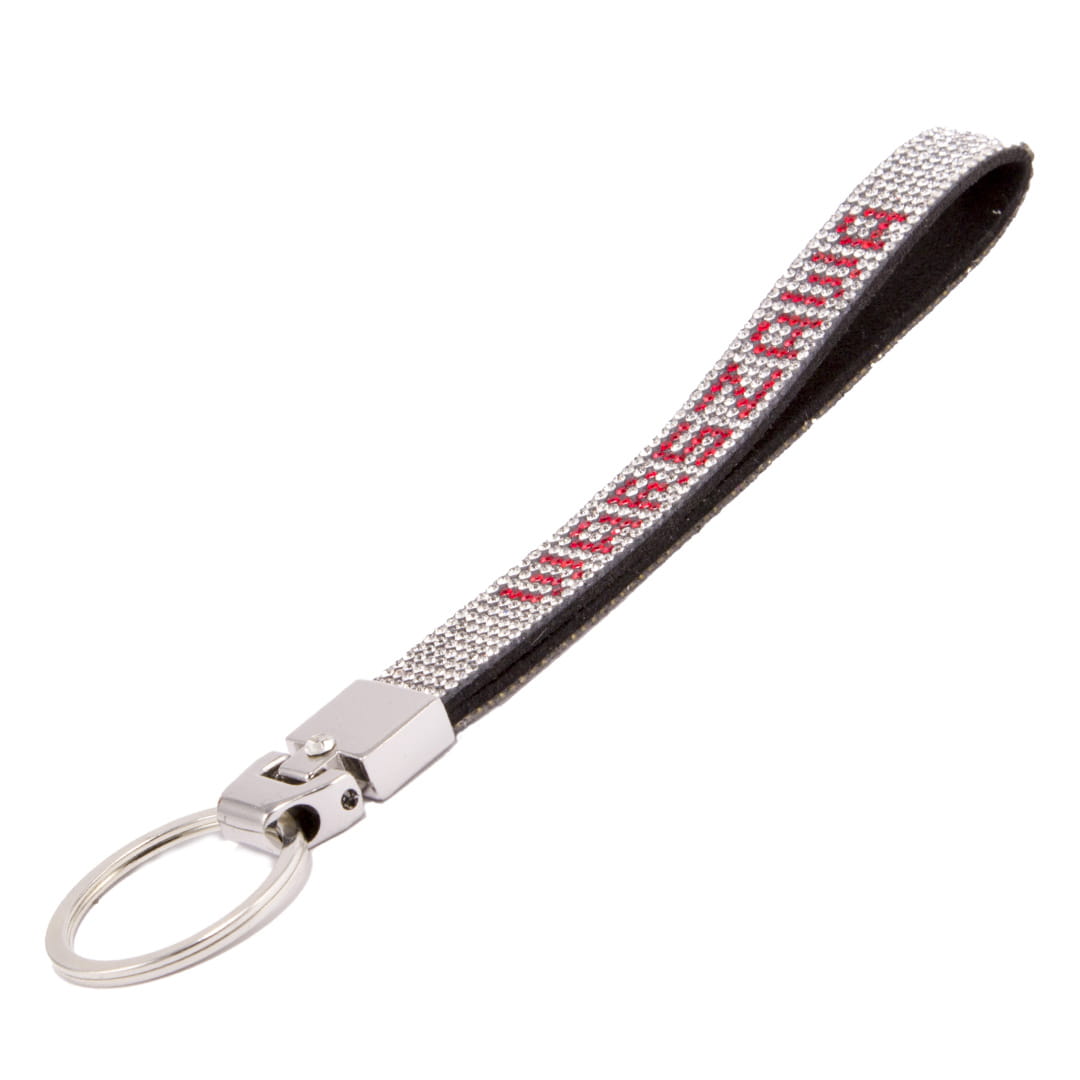 Piękna, zamszowa zawieszka z zewnętrznej strony wyklejona licznymi białymi i czerwonymi cyrkoniami. Czerwone cyrkonie ułożone są w napis Warszawa. Zawieszka zakończona jest metalową końcówką z doczepionym wysokiej jakości oczkiem gwarantującym trwałe i bezpieczne przyczepienie do kluczy, czy też garderoby. Świetnie nadaje się na breloczek lub ozdobę nadającą wyjątkowego blasku.