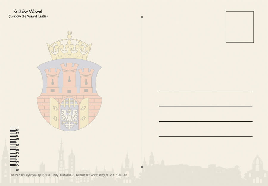 Trójwymiarowa pocztówka z napisem Kraków, przedstawiająca Wawel - dziedziniec zewnętrzny.