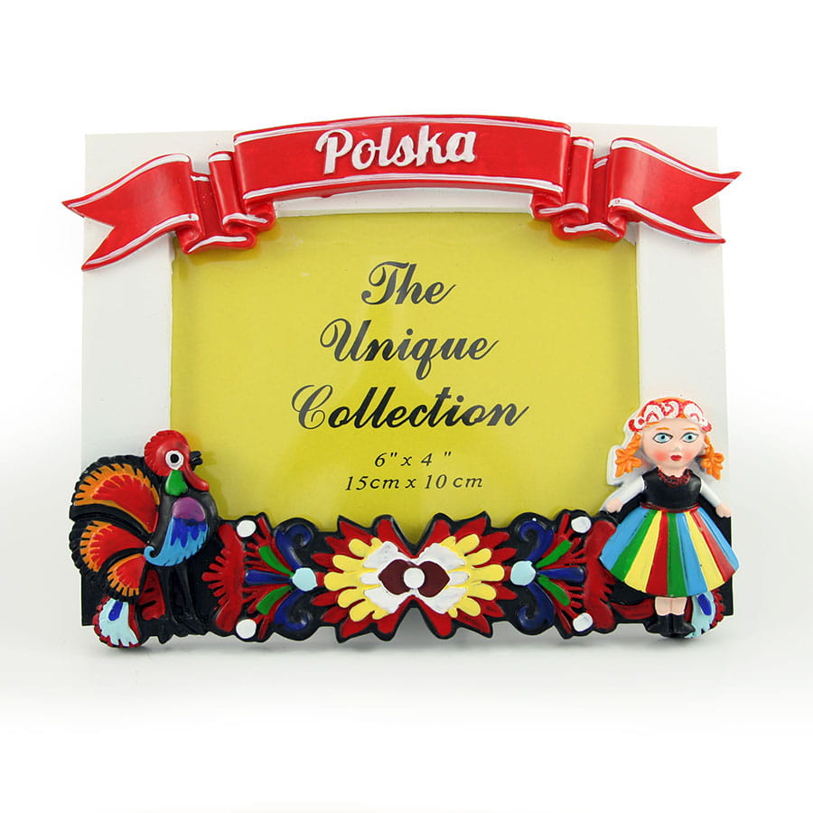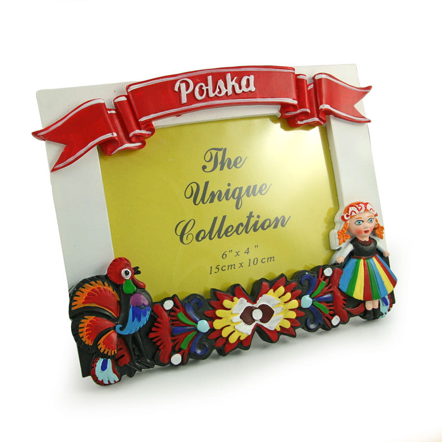 Ramka na zdjęcie (10,2 x 15,2 cm) wykonana z polyresinu. Ramka wykonana jest w stylu folklorystycznym - Łowickim.