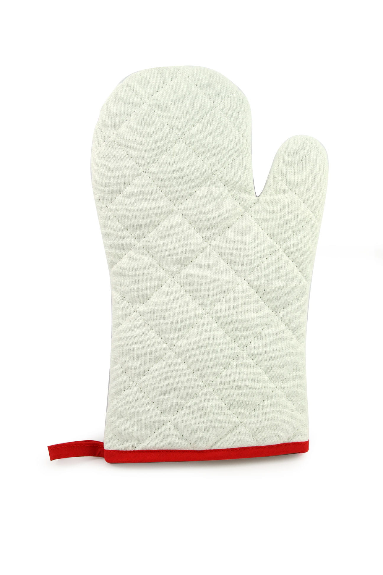 Rękawica kuchenna z napisem Polska oraz nadrukiem obrazującym charakterystyczne zabytki większych polskich miast.