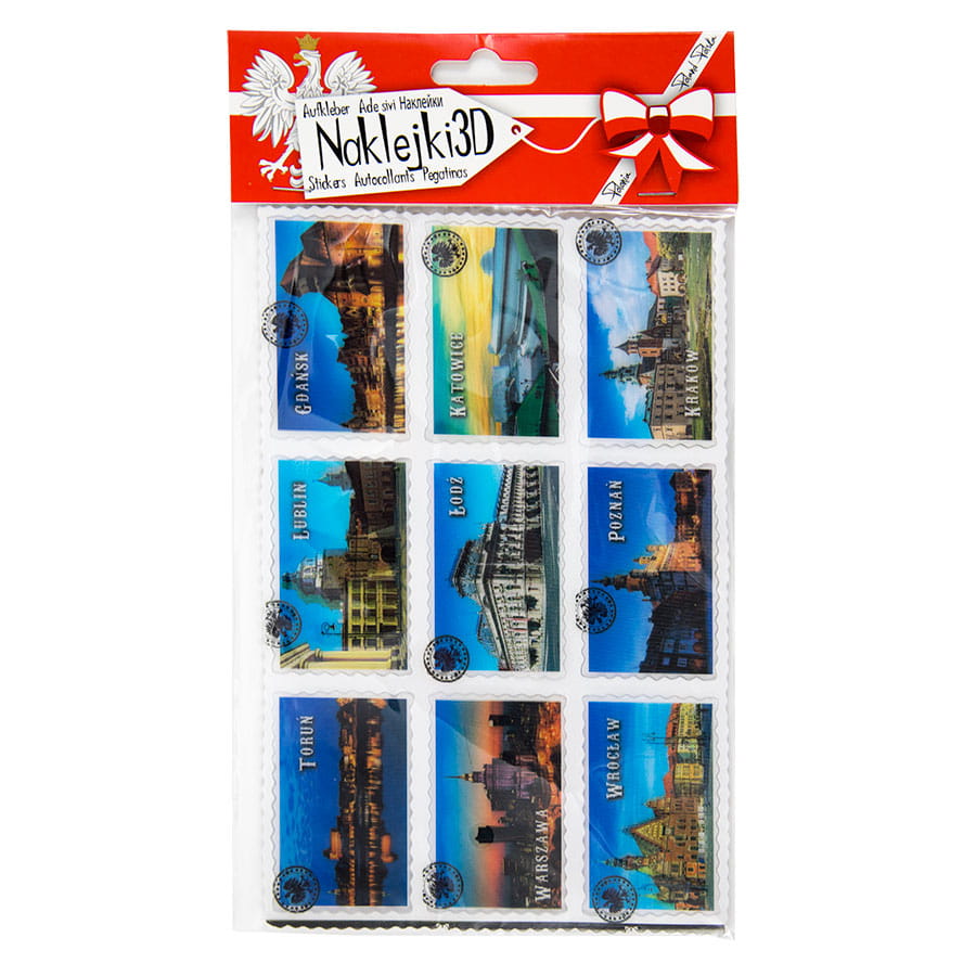 Zestaw naklejek 3D w kształcie znaczków - miasta polski